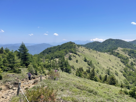 ただ、なかなかきつい。というか、暑い。道が開けてるので太陽がジリジリ照らして暑いです。1時間早ければもう少し涼しかったかな。風が吹くと気持ちよいのですが、止むと汗が吹き出します。もう夏山気分です。