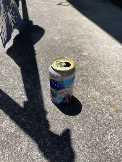 小屋でノンアルコールビールを買って飲み干します。暑い中のビールは(ノンアルコールでも)最高!