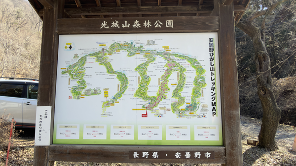 やっぱり山歩きの身体づくりは山歩きということで松本周辺で冬でも登れる低山を探したところヒットしたのが今回登った光城山(ひかるじょうやま)、912mです。