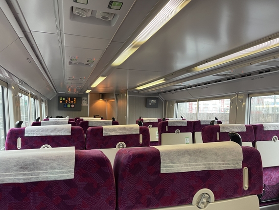 グリーン車は空いてて快適。約2時間弱、早起きしたので睡眠を取りながら電車に揺られます。