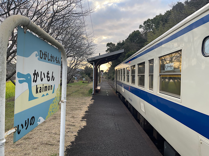 翌日の朝は8時前に開聞駅に着く電車で移動。車内は学生さんでいっぱい。