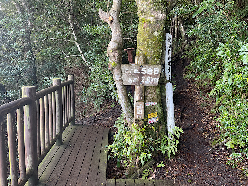 登山口は2合目。ここから登山道がはじまります。道は途中までは歩きやすい土の道です。