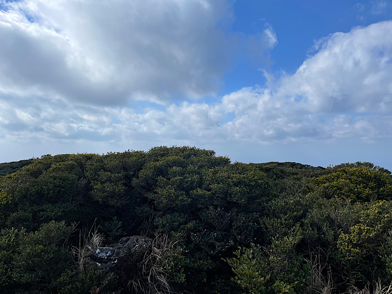 そうなんだ、と思いながら昼食をとっていると、後続の登山者がやってきて声をかけられます。写真撮ってと言われるのかなと思って返事すると、「屋久島は見えないんですか?」と。やっぱり考えることは同じですよね。