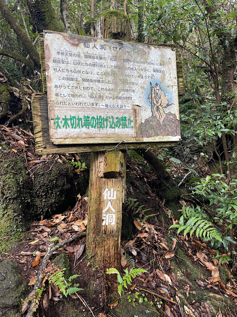 途中大きな岩の割れ目があって、仙人洞との解説板がありました。