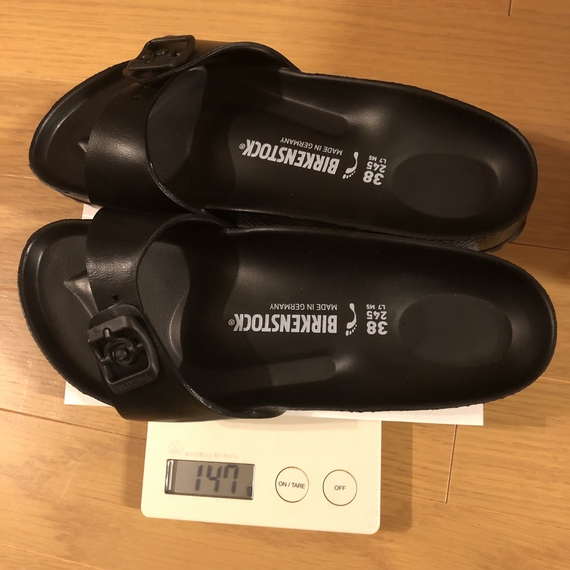 ちなみに手持ちのサンダルを計ってみると……484g!300g以上も軽くなりました!